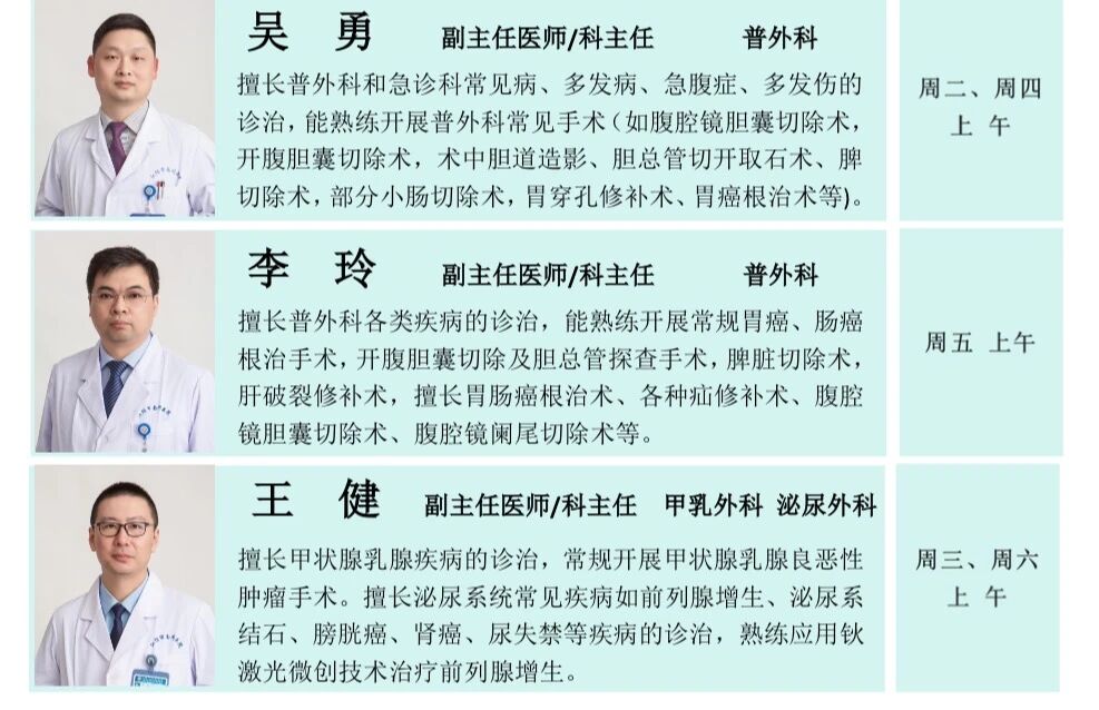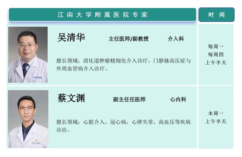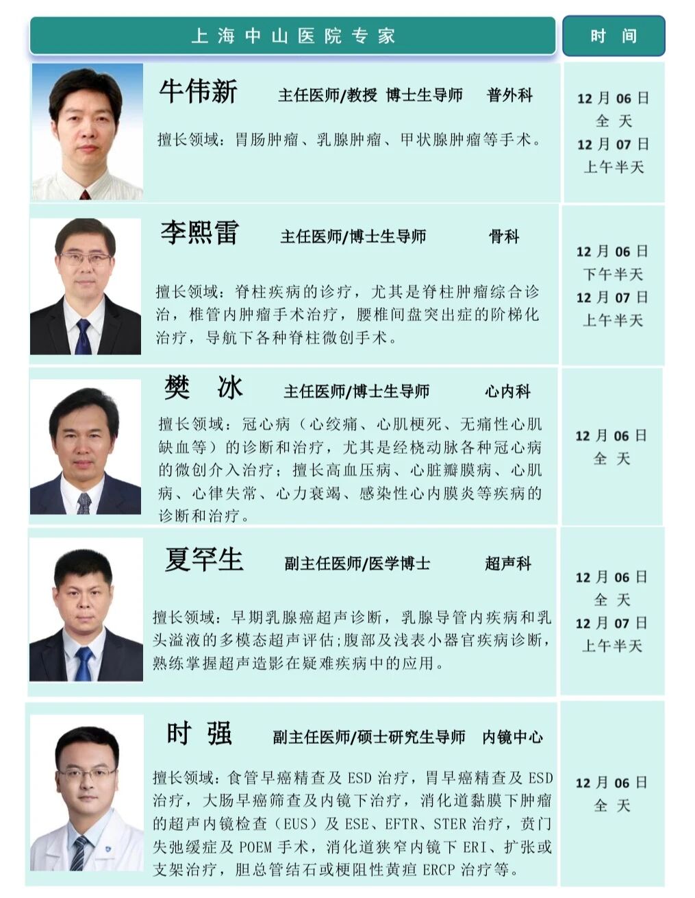 本周(12月06日全天、12月07日上午半天),上海中山医院专家团队来院坐诊时间: