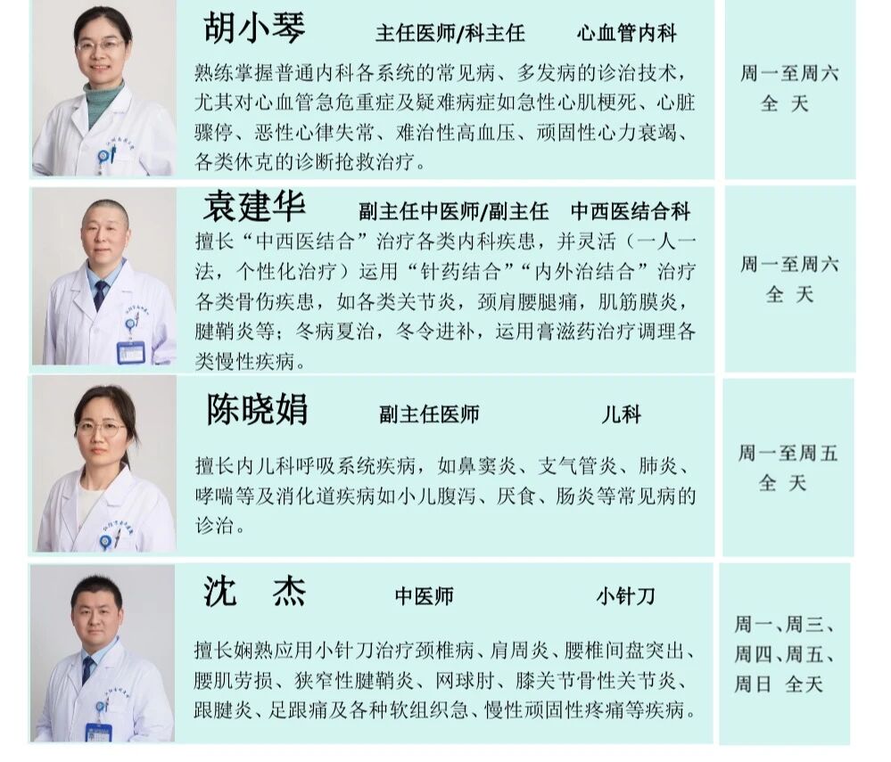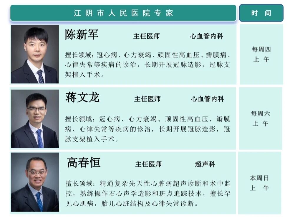 江阴南闸医院专家和各科科主任门诊坐诊时间:
